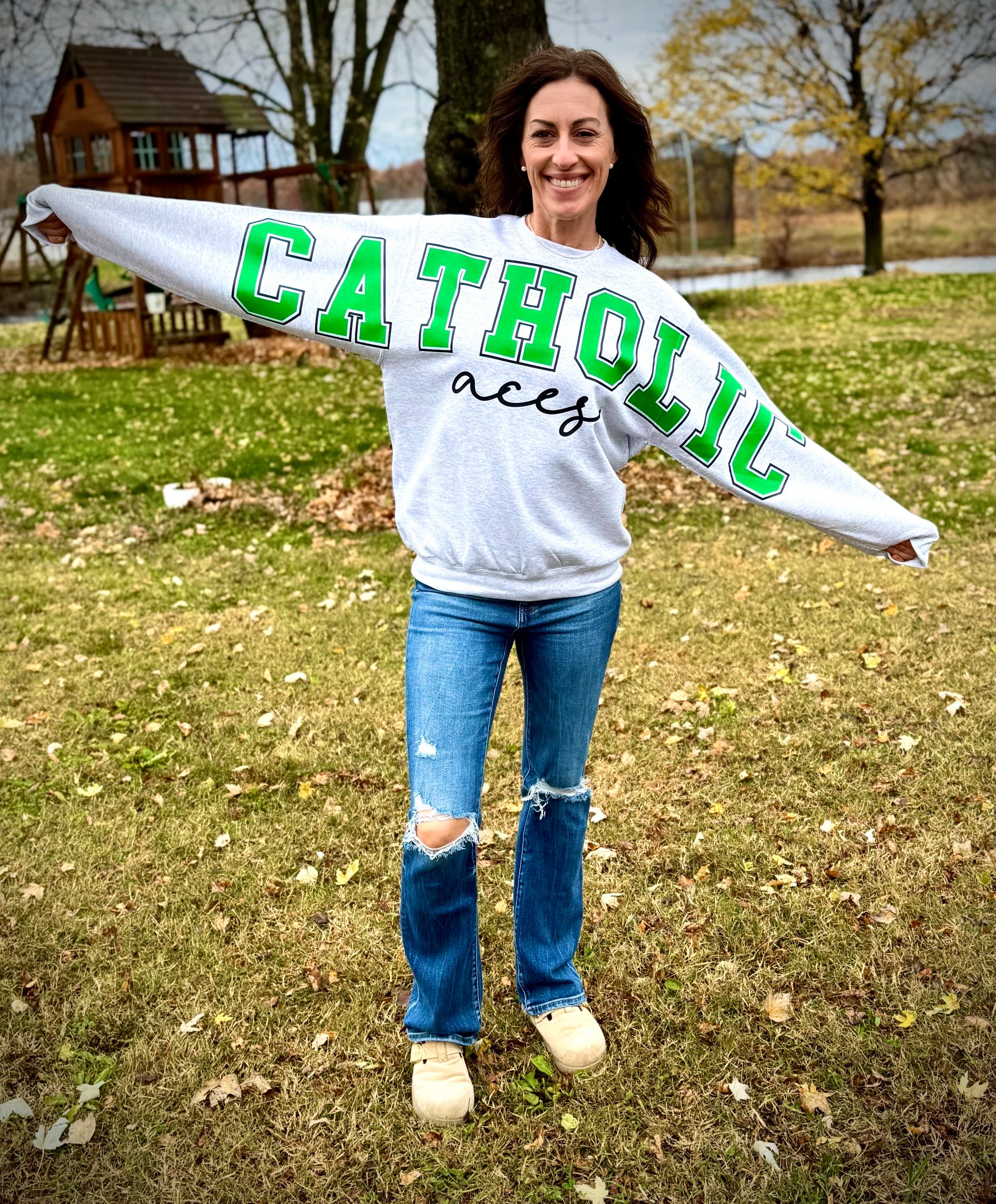 Fleece Crewneck Sweatshirt featuring our OVERSIZED school print. This design makes a BIG statement for a BIG fan!!
